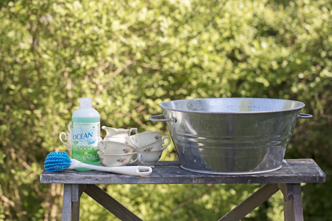 Men det finns mycket du kan göra för att hushålla med vattnet från kranen. Under soliga sommardagar kan du njuta av naturen – samtidigt som du diskar. Fyll upp en zinkbalja med vatten och diska utomhus när du gör rent tallrikarna efter middagen. Har det regnat? Ta vara på regnet från vattentunnan och diska med vatten från naturen!