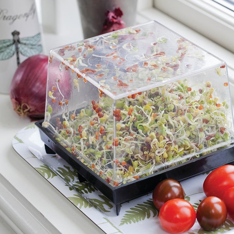Spraya dina odlingingar med vatten varannan dag för att försiktigt fördela en jämn vattenmängd över ytan. När skotten blivit cirka 2-3 centimeter höga tar du bort eventuellt lock och sprayar skotten ytterligare i några dagar, för att sedan vattna dina odlingar med vattenkanna.