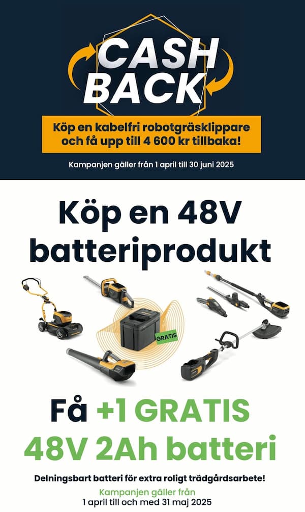 - 45 cm klippbredd för högt och vildvuxet gräs
